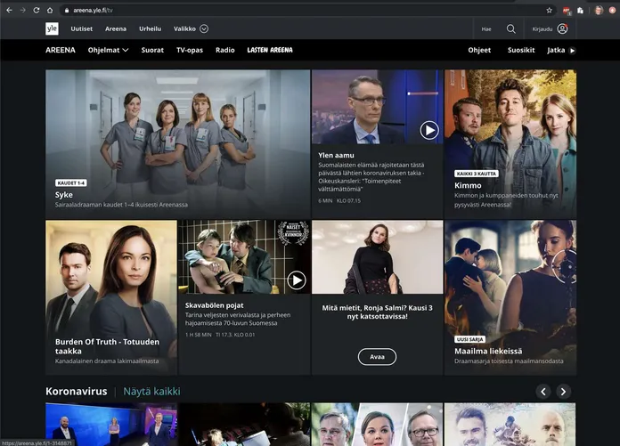 Yle Areenassa on tarjolla radio- ja televisio-ohjelmia suoria lähetyksiä sekä ohjelmatiedot.